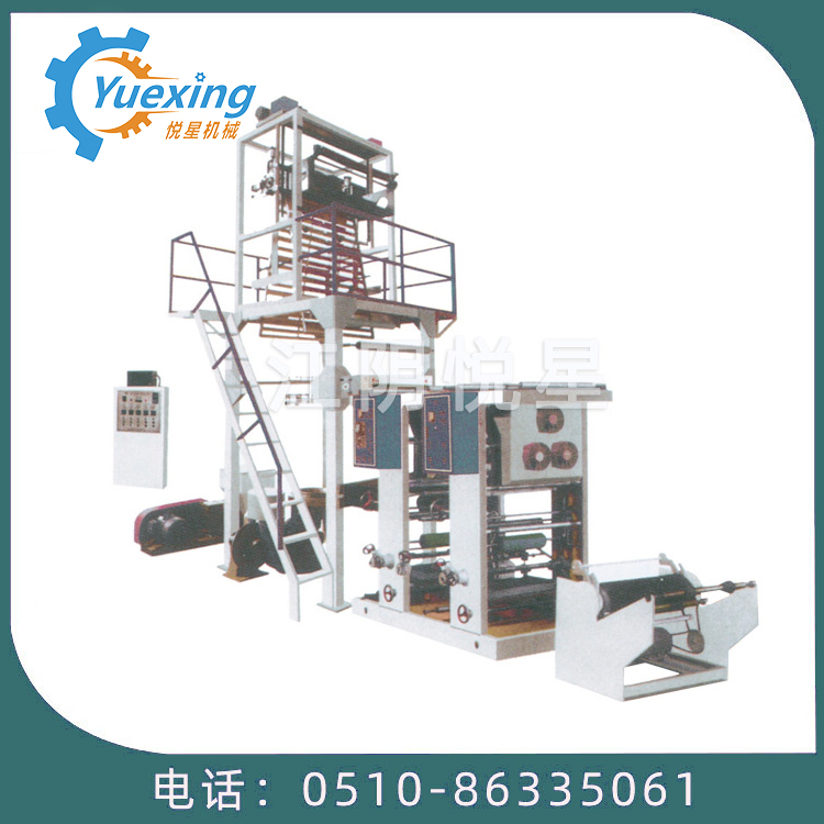 根據塑料外資企業要求,生產的雙色印刷機。主要配套在吹膜機上使用,具有快捷、便利的特點,使吹膜印刷一起完成。